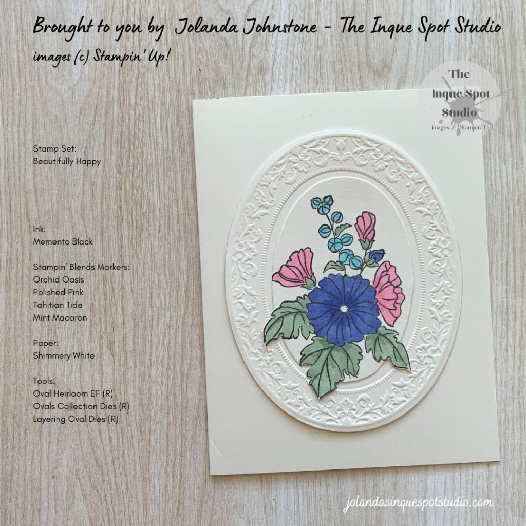 - Oval Frame: (3½” x 4⅜”) dry-embossed with the retired Oval Heirloom Frame Embossing Folder.