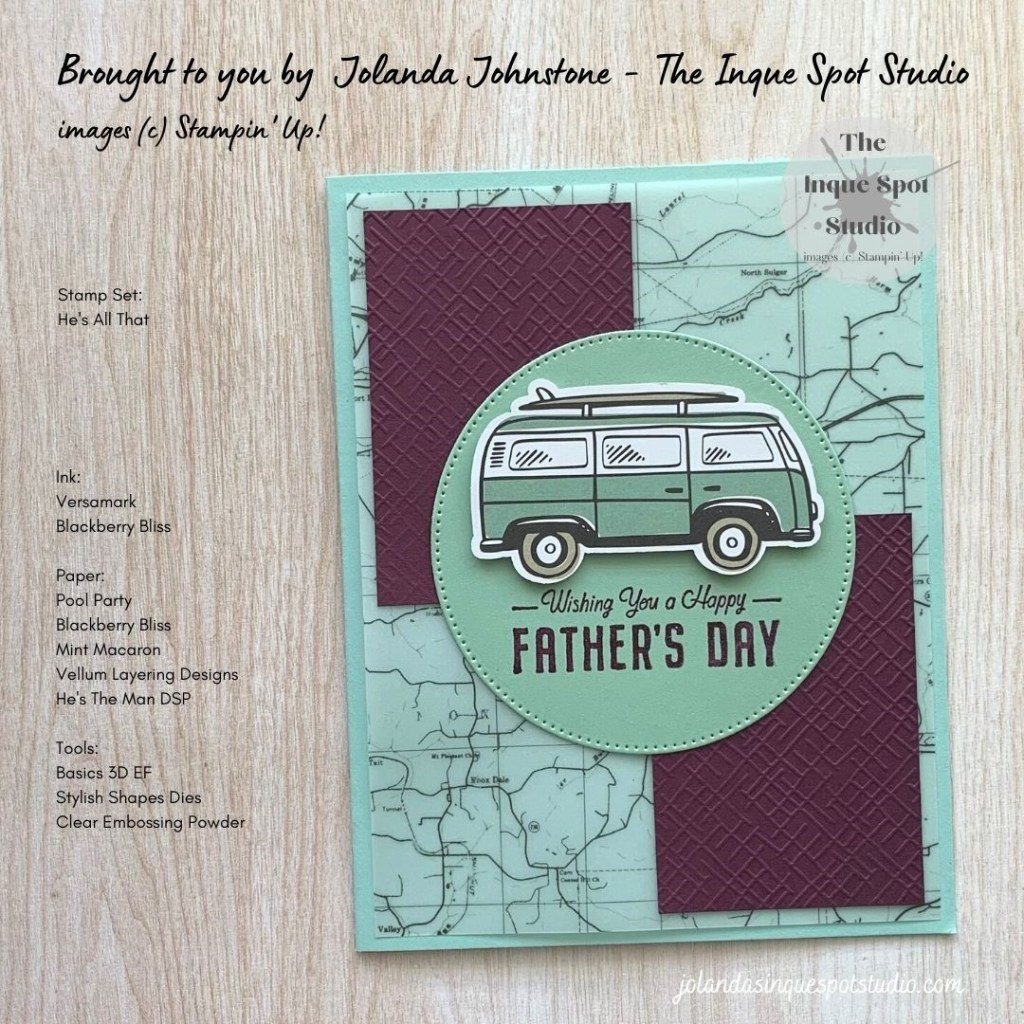 - Focal Image – Camper Van: Laser Cut image found in the He’s The Man Designer Series Paper pack.