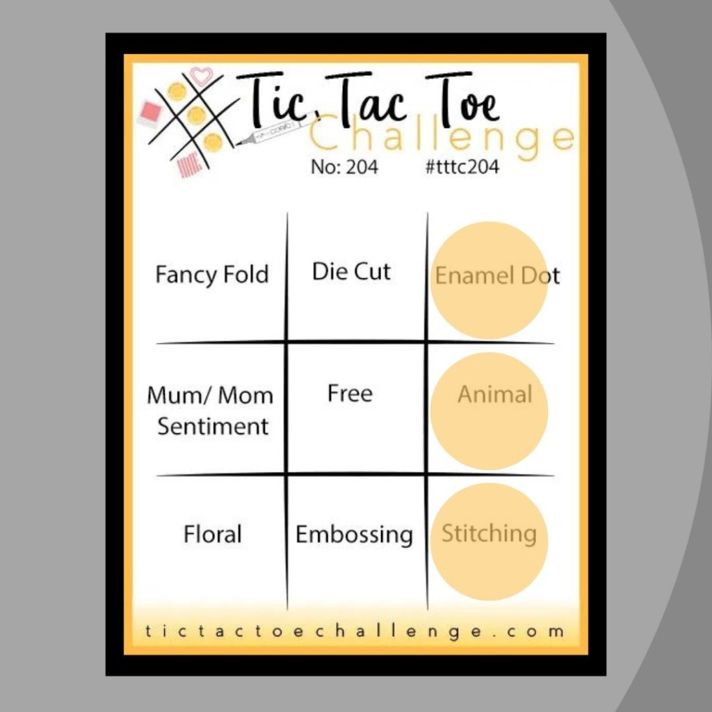 I chose a board line suggested by Tic Tac Toe (#204) and the word “Adorable” for the Alphabet Letter (A) to inspire my choices.