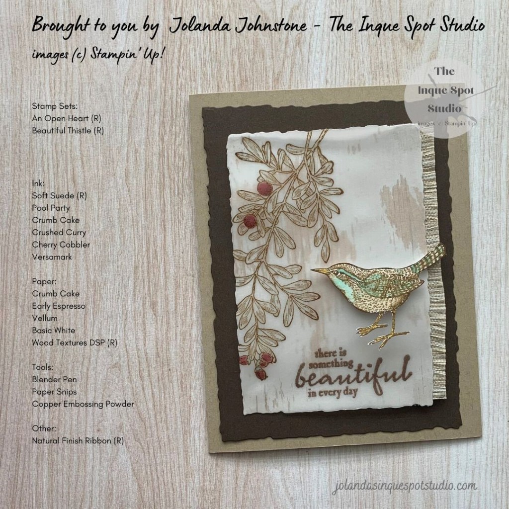 - The Bird image also from the An Open Heart stamp set was stamped with Soft Suede ink.