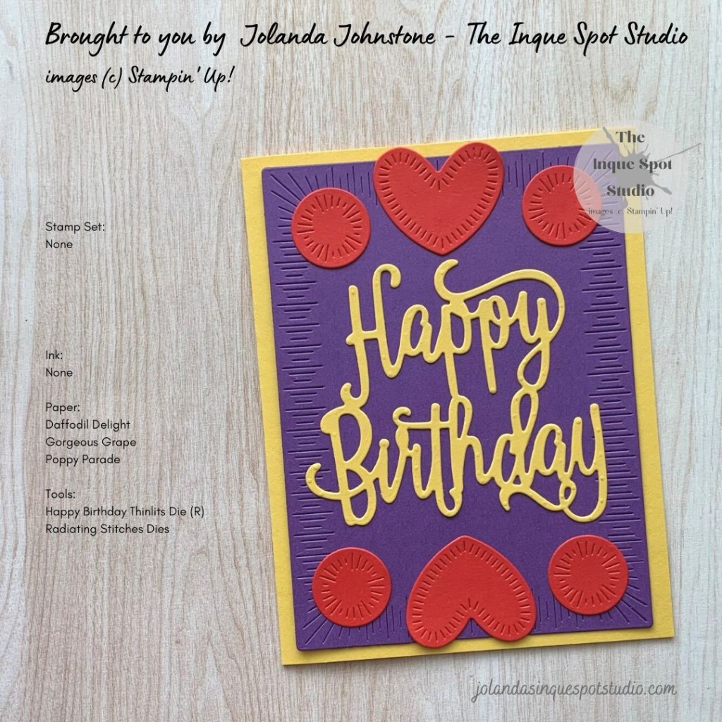 - Decorations: Poppy Parade cardstock scrap die-cut with both the Circle and Heart dies also from the Radiating Stitched Dies set.