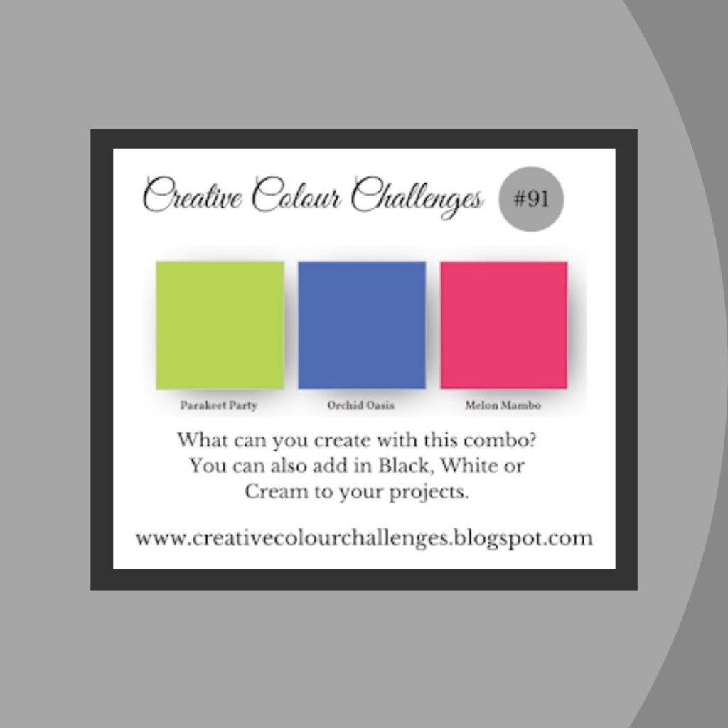 I created a Birthday card using the new Cheerful Daisies Bundle (Stamp Set & Matching Dies) for Happy Little Stampers (June) and selected the colors suggested by Creative Colour (#91).