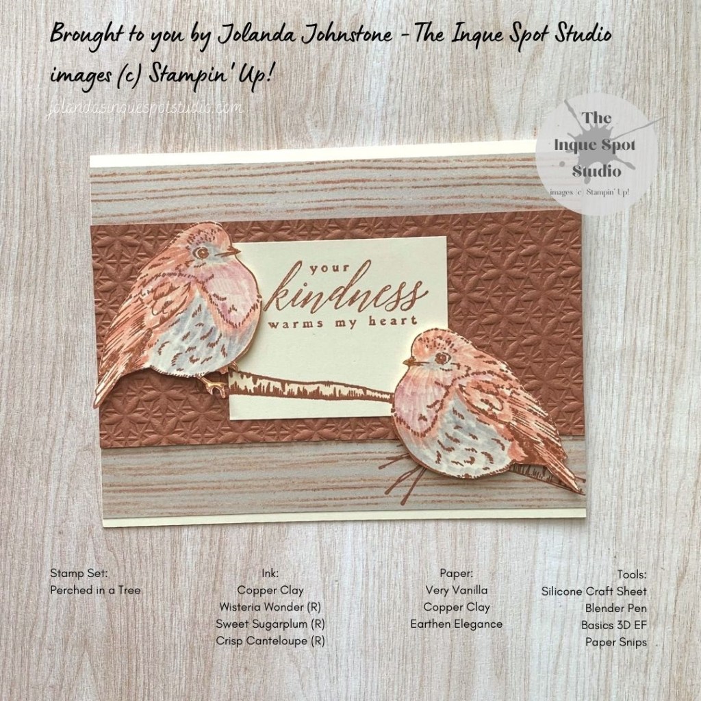Having a play with the Perched in a Tree stamp set and mixing in the new neutral color Copper Clay for the challenges Can You Handle the Pressure (#32) and incorporating additional colors for Color Dare (#550).