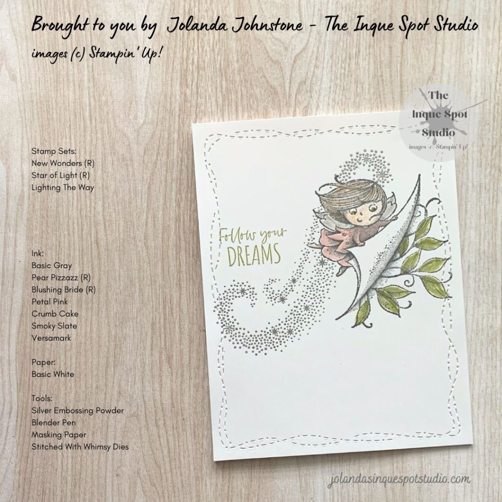 - The sentiment, Follow your dreams, from the Lighting Your Way stamp set was added with Pear Pizzazz ink.