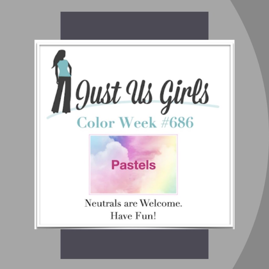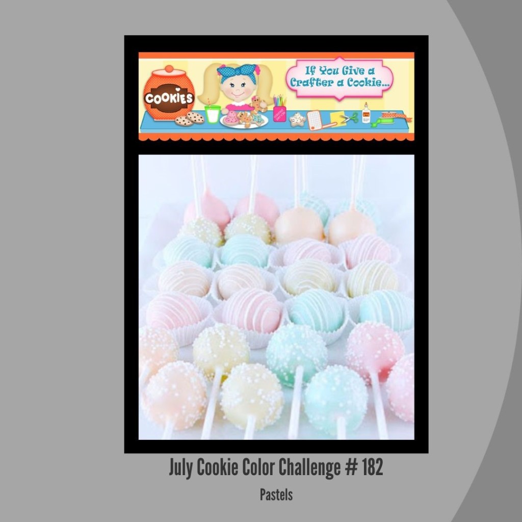 In addition to the pink, I selected the other Color Throwdown (#750) colors of teal and gray. As these colors are essentially pastel, I am sharing this card with Just Us Girls (#686) and If You Give a Crafter a Cookie (#182).