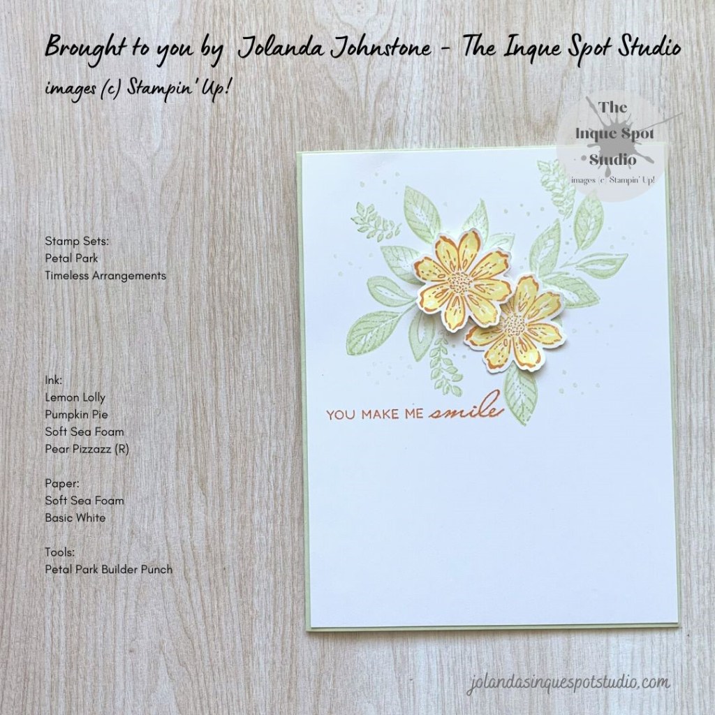 • The sentiment, You make me smile, from the Timeless Arrangements stamp set was stamped with Pumpkin Pie ink.