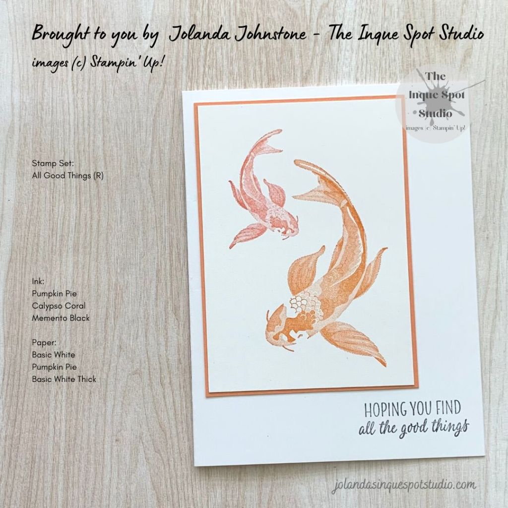 Indulge me…as I was rooting around for a stamp set for my previous post, I came across the retired All Good Things stamp set. A favorite featuring Koi Fish. Just perfect for an Orange color challenge, don’t you think?