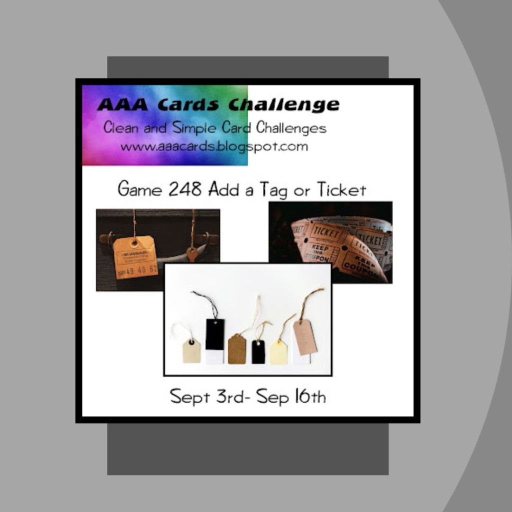 So, I have combined CAS Colours & Sketches (#519) with AAA Cards (#248) by adding a truncated Tag as my shape.