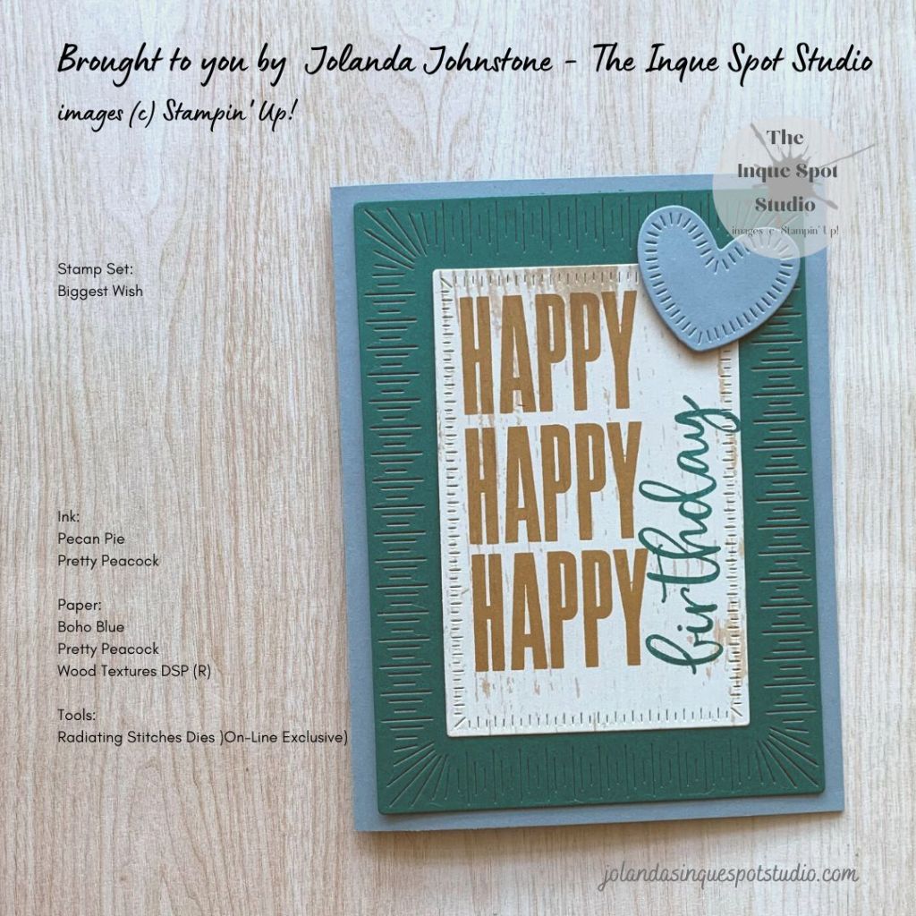 - The word, HAPPY, from the Biggest Wish stamp set was stamped three times with Pecan Pie ink.