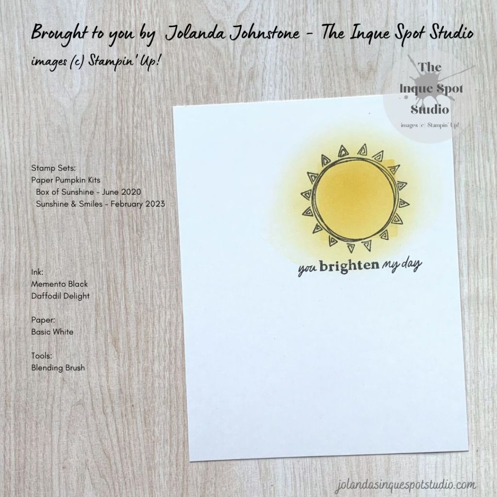 - The Sun image from the Box of Sunshine stamp set from the June 2020 kit was stamped with Memento Tuxedo Black ink.