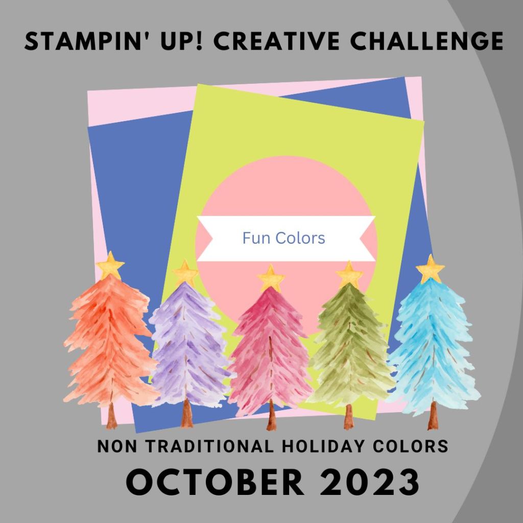 Playing with several challenges: This month Stampin’ Up! ‘s Creative Challenge is to use unconventional colors for a Holiday card.