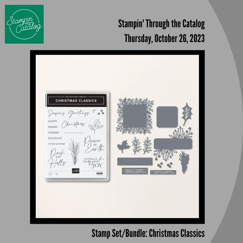 I selected the one’s suggested by Color Dare (#570) to create a Fun Fold card for Inspire Create (#154) by case-ing a card created by Karen Farquhar, using the Stampin’ Through The Catalog stamp set choice for today, Christmas Classics. I am sharing this card with Creative Creases (#68) and Krafty Chicks (#687).