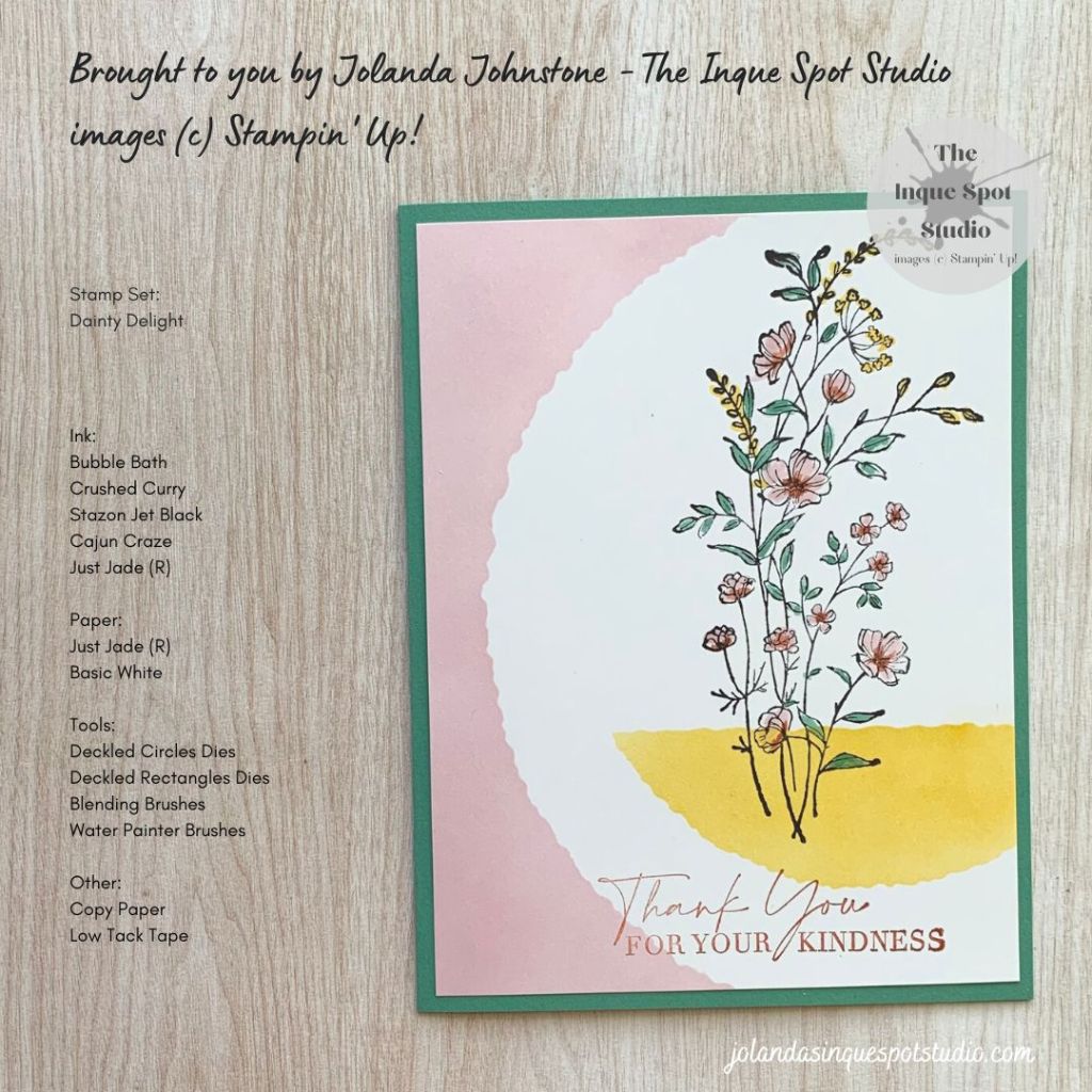 - The larger Floral image from the Dainty Delight stamp set was stamped with waterproof Stazon Jet Black ink.