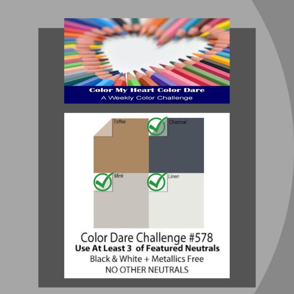 Additional Inspiration: Themes: Alphabet (Letter S) Stars, Park Hopping (December) Holiday Lights and Inkspirational (#305) Celebrate; Color: Color Dare (#578) Gray Granite (for Mink), Basic Gray (for Charcoal) and Smoky Slate (for Linen): and Tools: Happy Little Stampers (December) Dies.