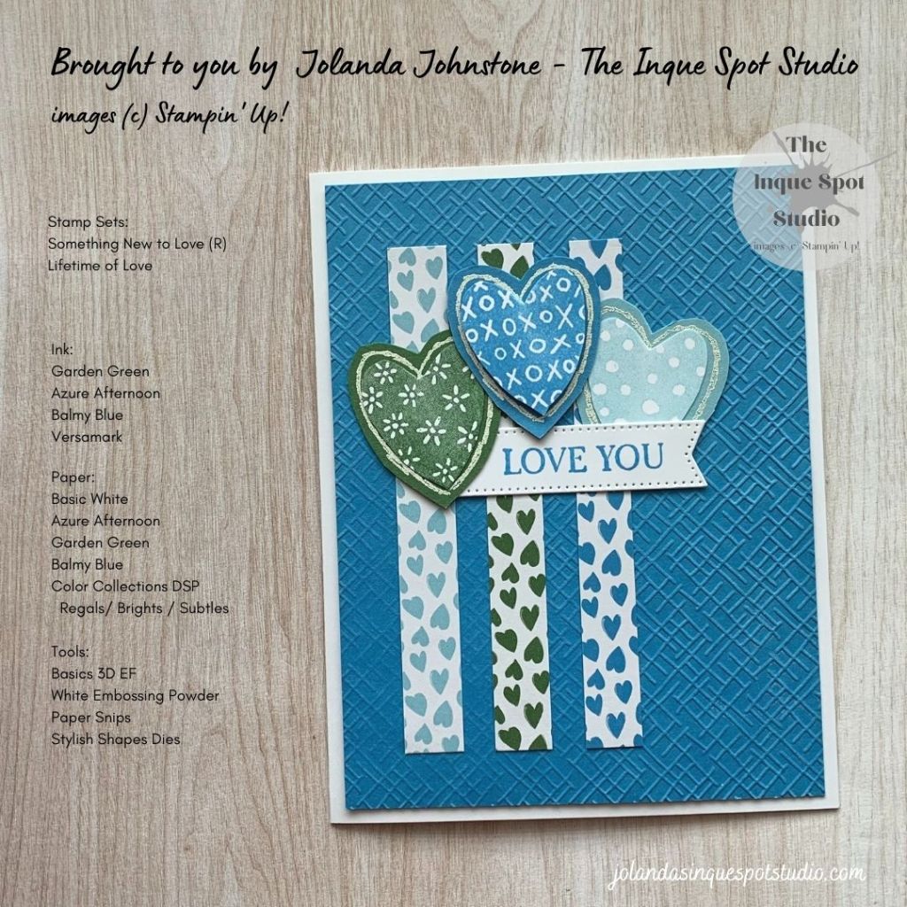 - Shapes – Hearts: Basic White, Garden Green, Azure Afternoon and Balmy Blue cardstock scraps.