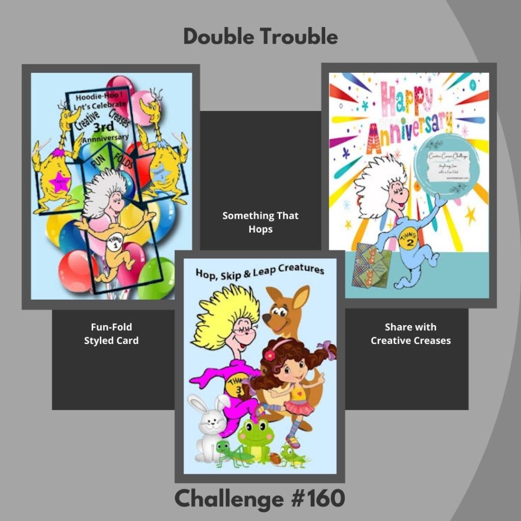 Coincidently Double Trouble (#160) is partnering with Creative Creases (#76) to celebrate the 3rd Anniversary of Anything Goes with Creative Creases, a challenge dedicated to fun folds.