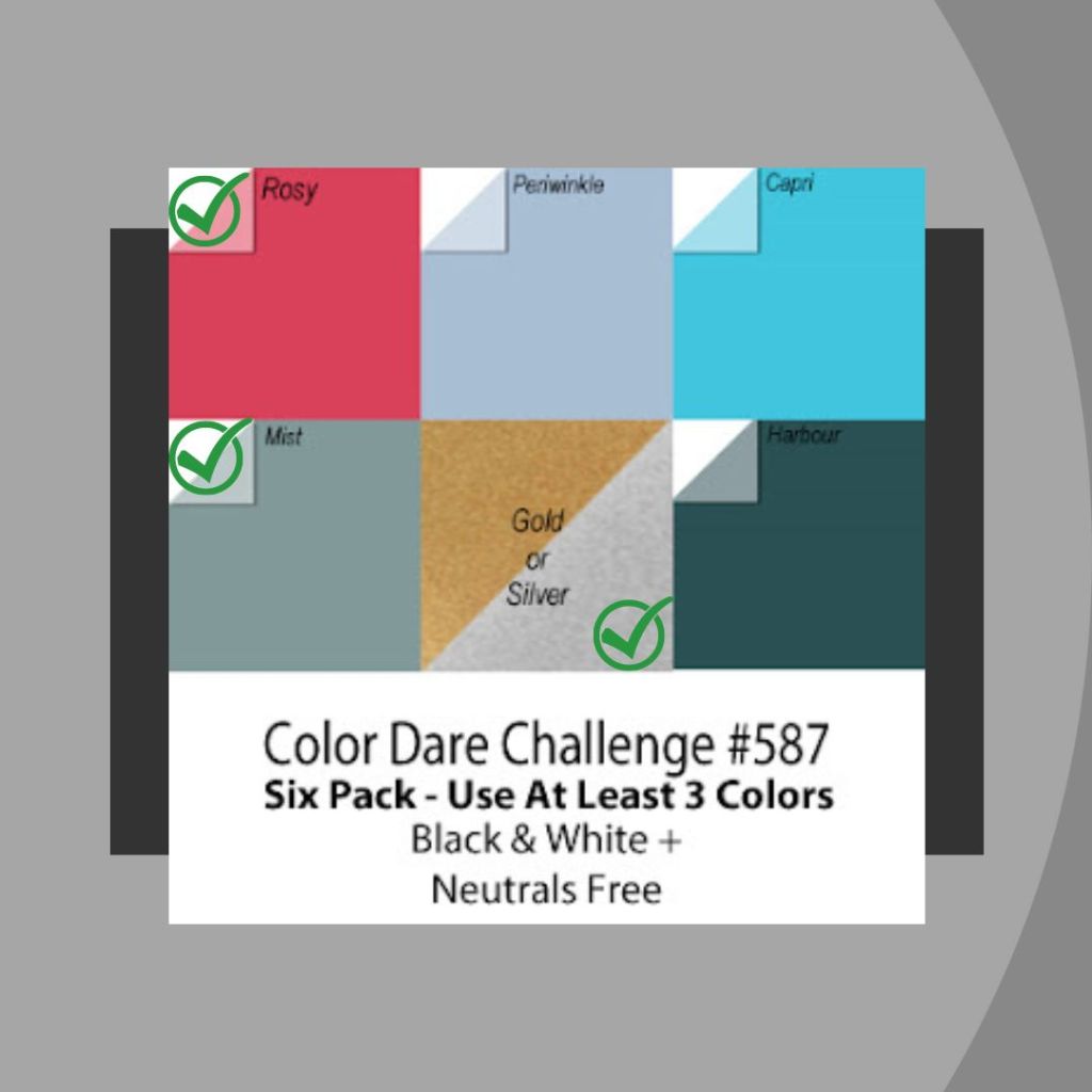 Frosted Pinks for The Flower Challenge (#88); Four Seasons (February); and Color Dare (#587) along with the CAS Colours & Sketches (#531) layout which I flipped to the vertical position.
