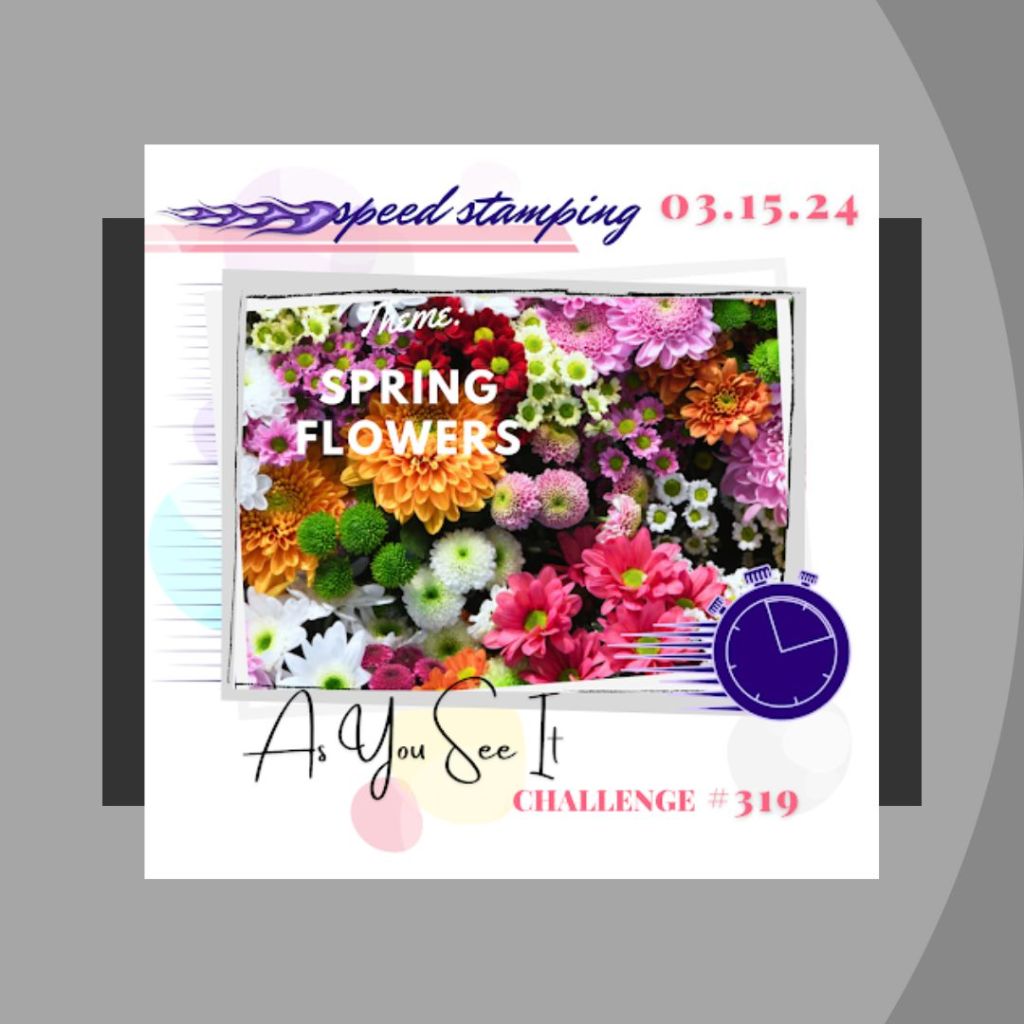 Another clean and simple challenge: Addicted to CAS (#254) with the key word: Bloom. I chose to see if I could beat the clock for the As You See It (#319) speed challenge with a Floral theme.