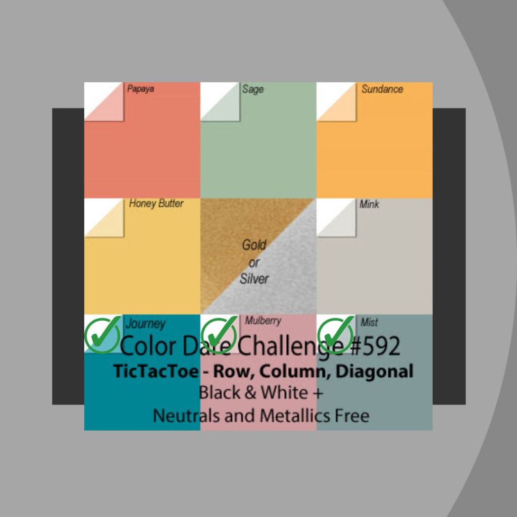 I picked the bottom row of colors suggested by the Color Dare (#592) Tic Tac Toe board and the current Global Design (#438) sketch as it suited a clean and simple style that I could complete quickly by water-coloring.