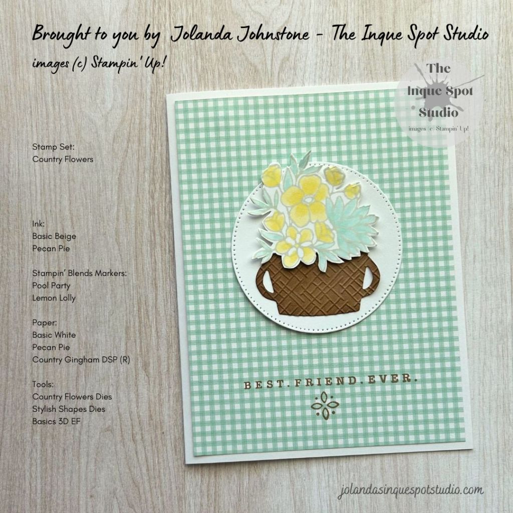 - The sentiment, Best Friend Ever and the Eyelet image from the Country Flowers stamp set were stamped with Pecan Pie ink.
