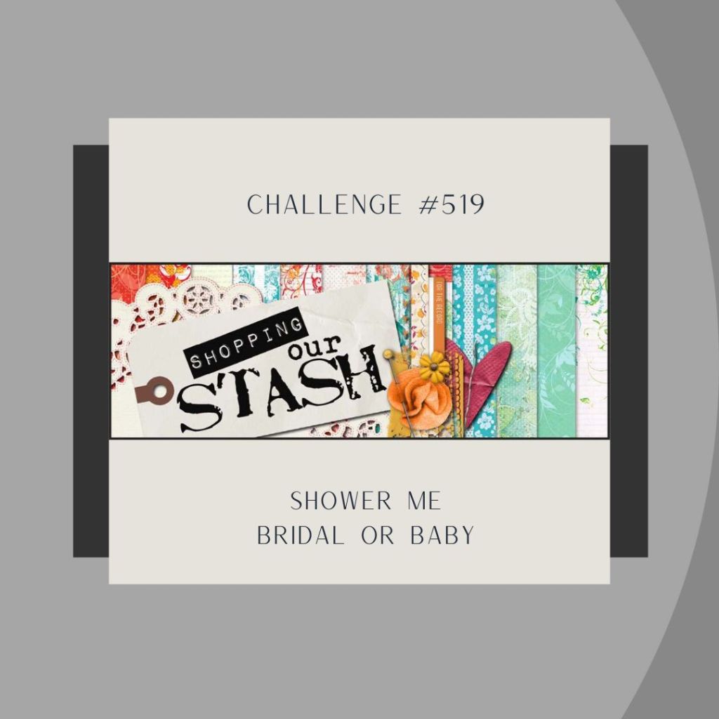 It is going to be a busy day tomorrow. So, I am getting a little ahead by playing with the Inspire Create (#165) Sketch and the Color Dare (#595) Palette for a few others: Shopping Our Stash (#519) Shower theme and Time Out (#261) Quote Word “Dreamy” for wondering if the baby is a boy or a girl.