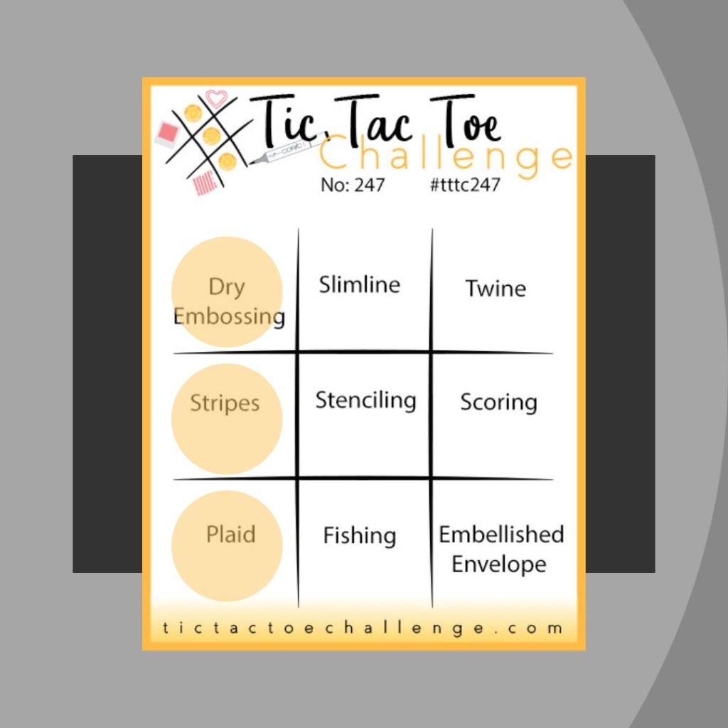 With pleasure, I accepted the Guest Designer role with the Tic Tac Toe team for Challenge Number 247. I picked the left column: Dry Emboss, Stripes and Plaid.