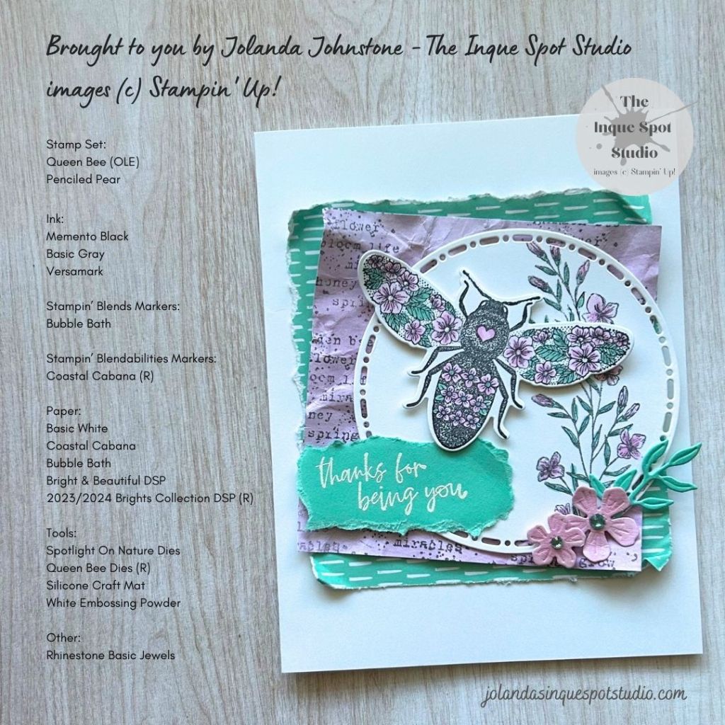 - The Bee was die-cut with the retired coordinating die from the Queen Bee Dies set.