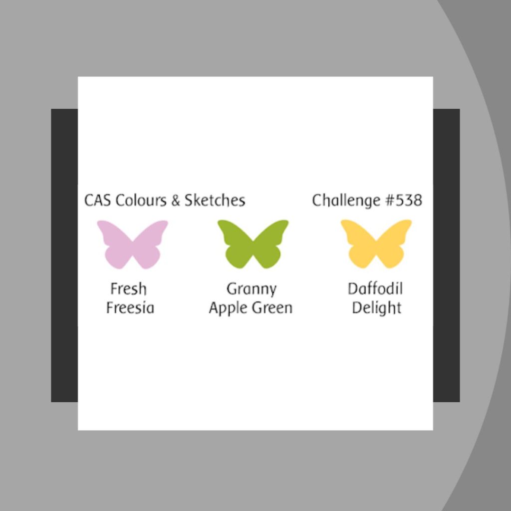 I chose to create a clean and simple card for CAS Colours & Sketches (#538) using the current color palette and picked the Tuesday Morning (#760) Sketch.