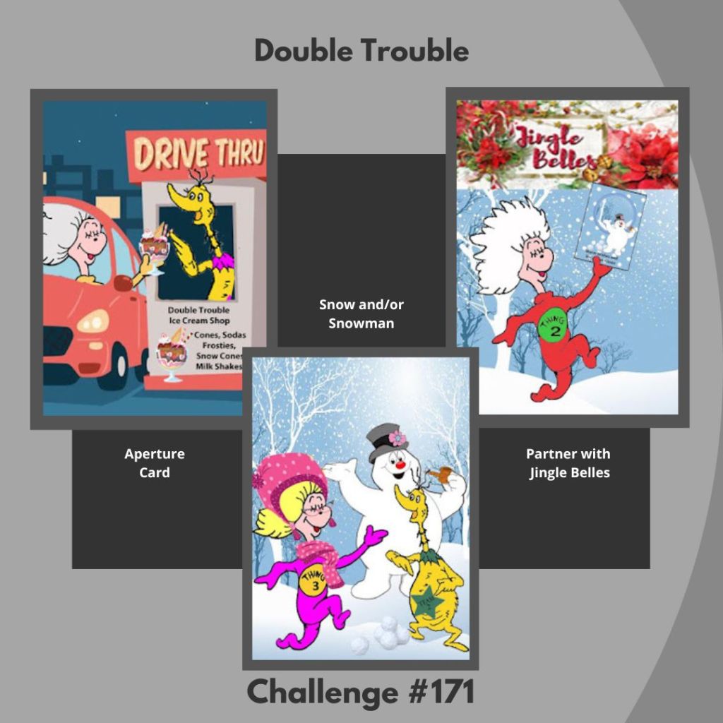 So cute! What a great way to use the opening to show off that snowman when you open the card. Thanks for joining us at Double Trouble!