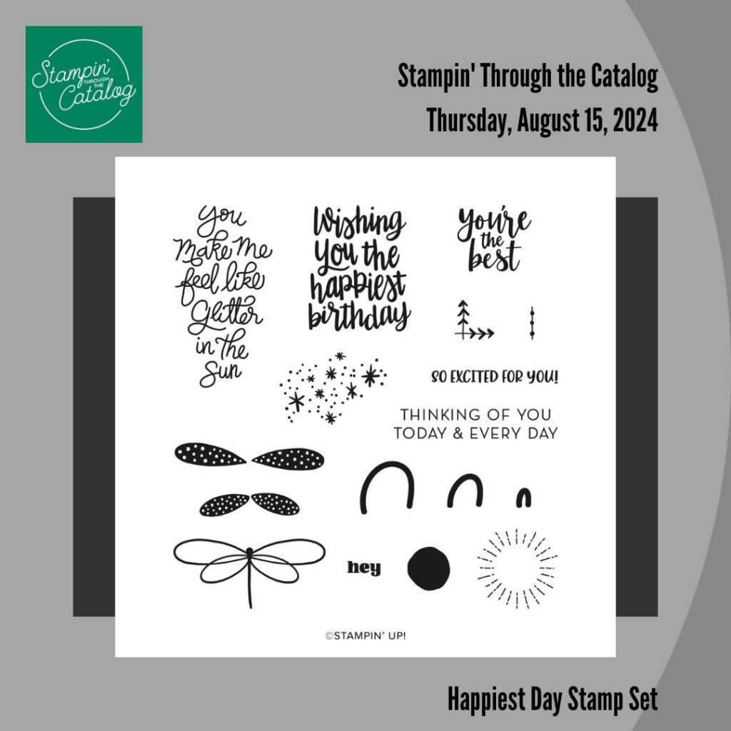 Inspiration for my design: Alphabet (Letter J) for Juvenile…make a kid suitable card; Facebook Stampin’ Through The Catalog – upcoming featured stamp set – Happiest Day; and bringing it all together, the current TGIF (#485) sketch.