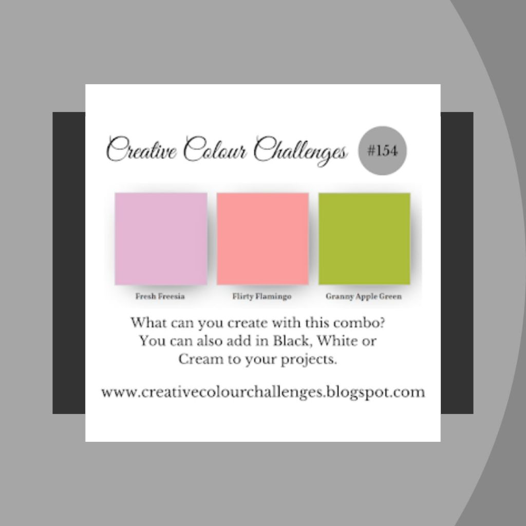 - Decoration – Flowers: Fresh Freesia, Flirty Flamingo, Basic White and Granny Apple Green cardstock scraps die-cut with various dies from the Cheerful Daisies Dies set (Flowers) and the retired Apple Blossoms Dies set (Leaves).
