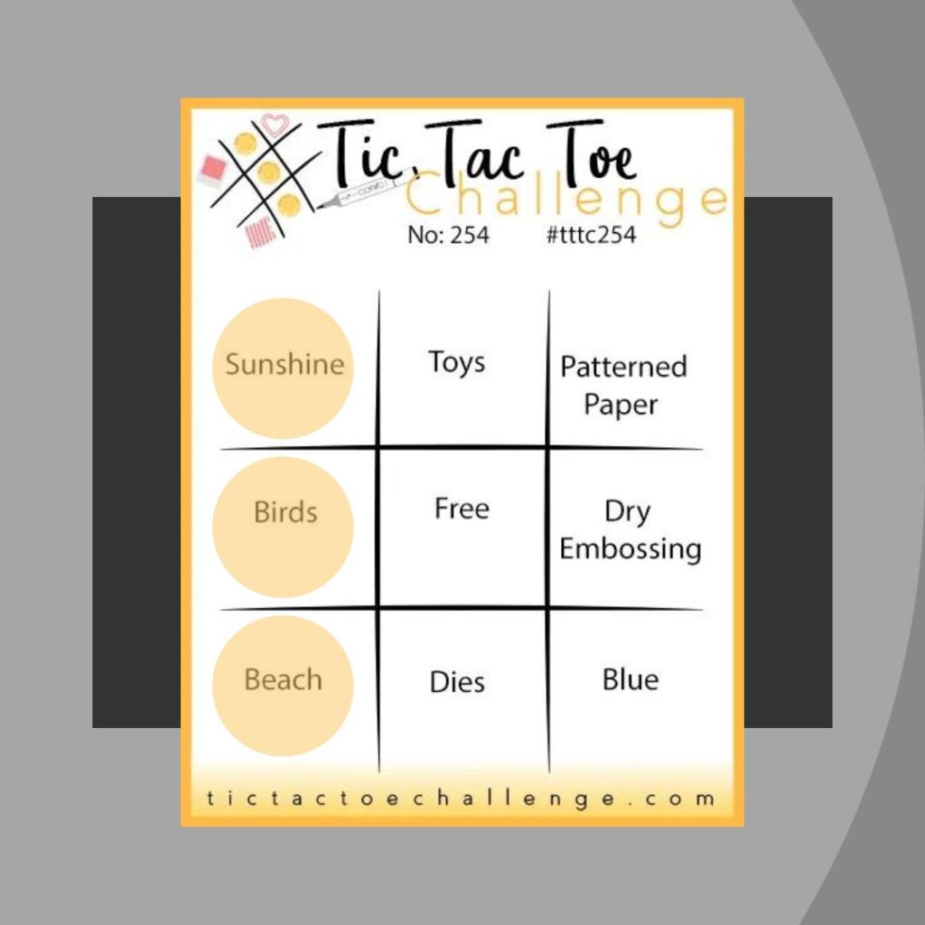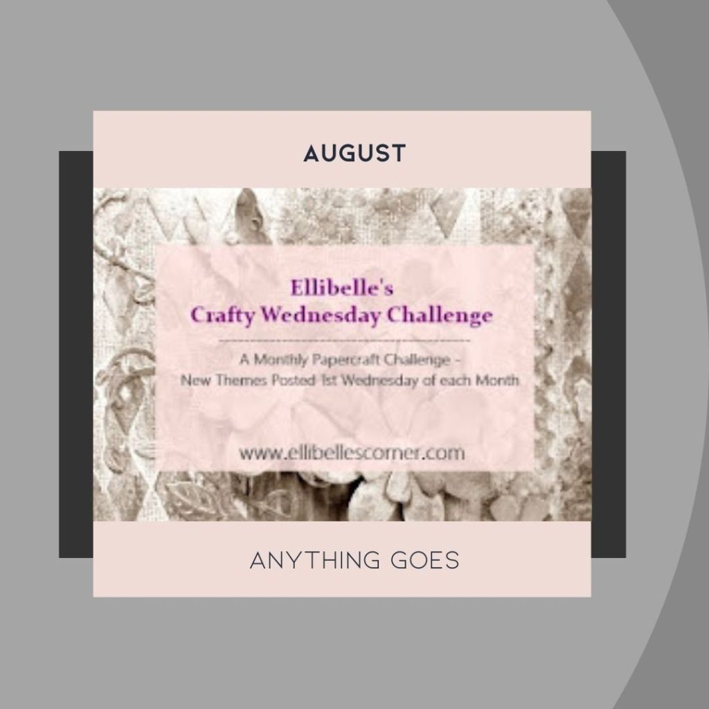 The other challenges that informed my design decisions:  Tic Tac Toe (#254) for Sunshine, Birds and Beach and Addicted To CAS (#265) for the Technique. Bringing them together, I chose the Paper Craft Crew (#583) Sketch which I flipped to the vertical. I am also sharing this card with Ellibelle’s Crafty Wednesday (August) Anything Goes.