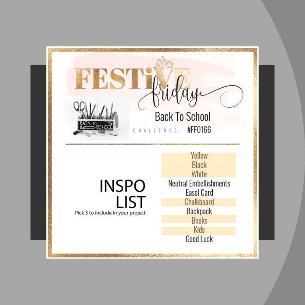 Festive Friday (#166) and TGIF (#486) are all about School and the Color Dare (#613) Primary palette is ideal for that theme. I opted for the Freshly Made (#650) Sketch to bring it all together.