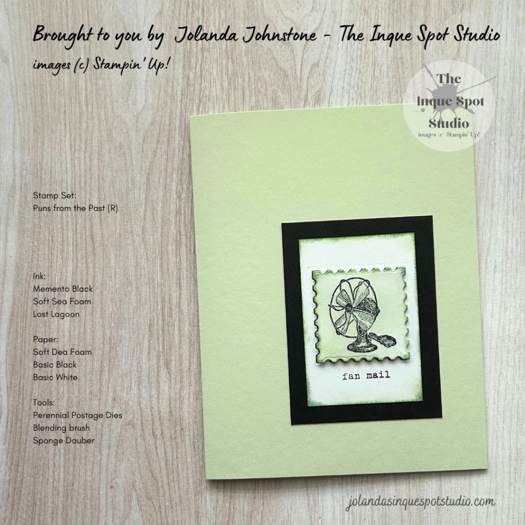 - The “Stamp” was colored with Soft Sea Foam ink using a Blending Brush and the edges were also colored with Lost Lagoon ink applied with a Sponge Dauber.