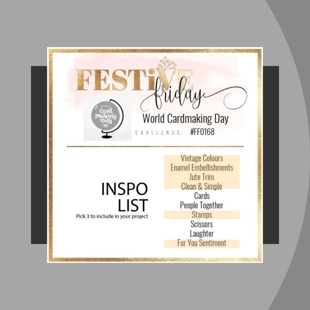 Additional inspiration for design elements were influenced by both Festive Friday (#168) and Tic Tac Toe (#256) to dress up my card a little bit.