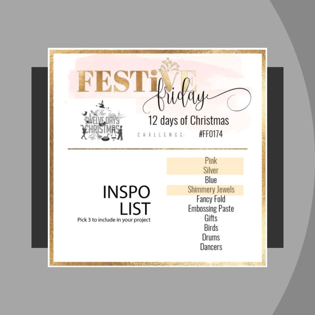 The colours make this card feel peaceful but shows up the sparkle! Thanks for joining us for the Festive Friday Challenge. Have a happy Festive Season