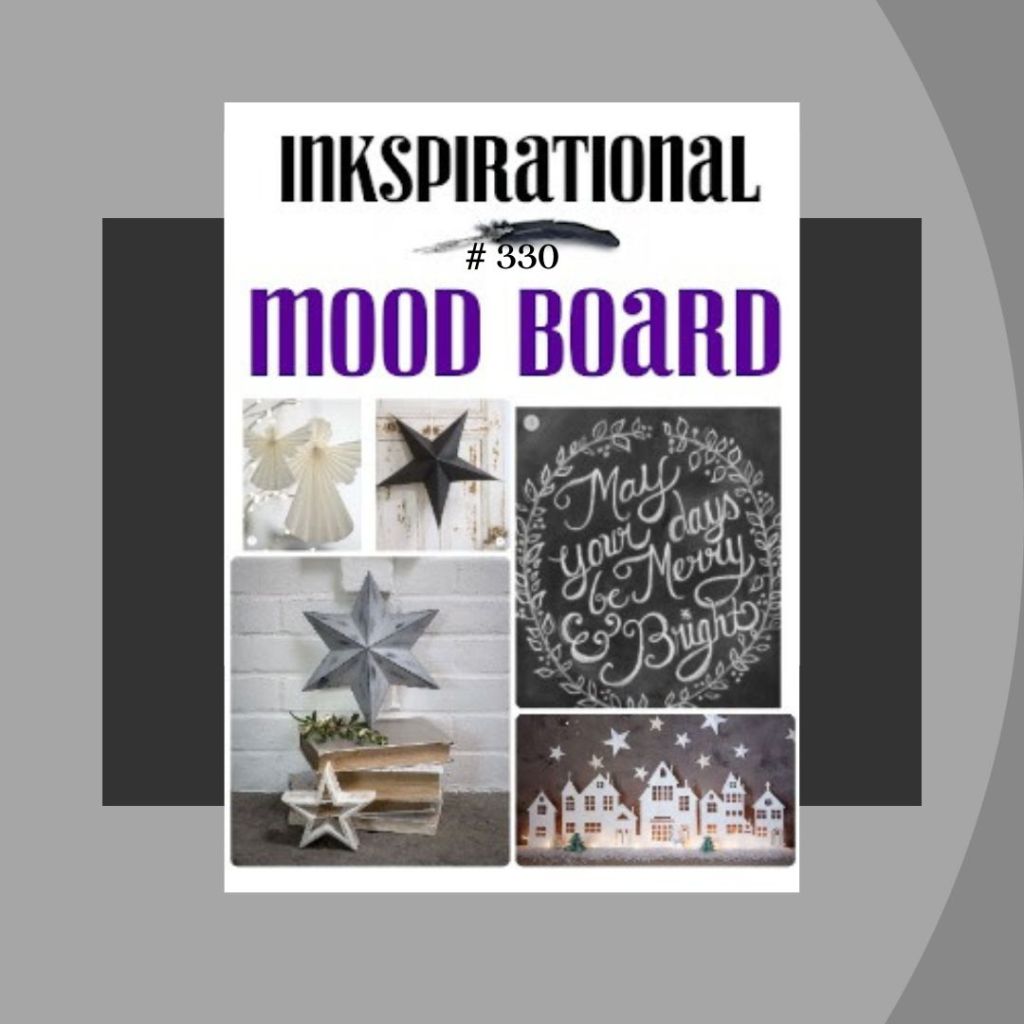 For both Beautiful Blossoms (#23) and The Flower Challenge (#98) I picked a modern stylized Floral image adding some sparkle and the muted mood board suggested by Inkspirational (#330) thinking that my Floral elements could double as ornaments.