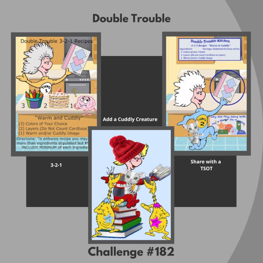 2. Jolanda, such a clever interpretation of our TSOT sketch combined with Double Troubles 3-2-1 challenge! So creative to use bleach and embossing to create the colors you wanted for your design!! Thank you for sharing your creativity with both sister challenges (TSOT & DTC)!!! -Donna