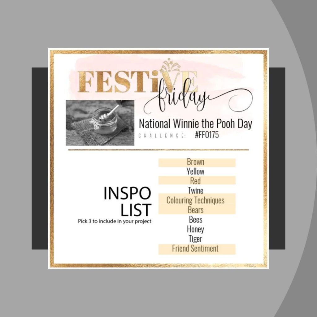 3. You just get the impression that this bear is dancing to his own beat. He is very cute. I love the way you have put all your elements together. Thank you for joining the festive Friday Challenge.