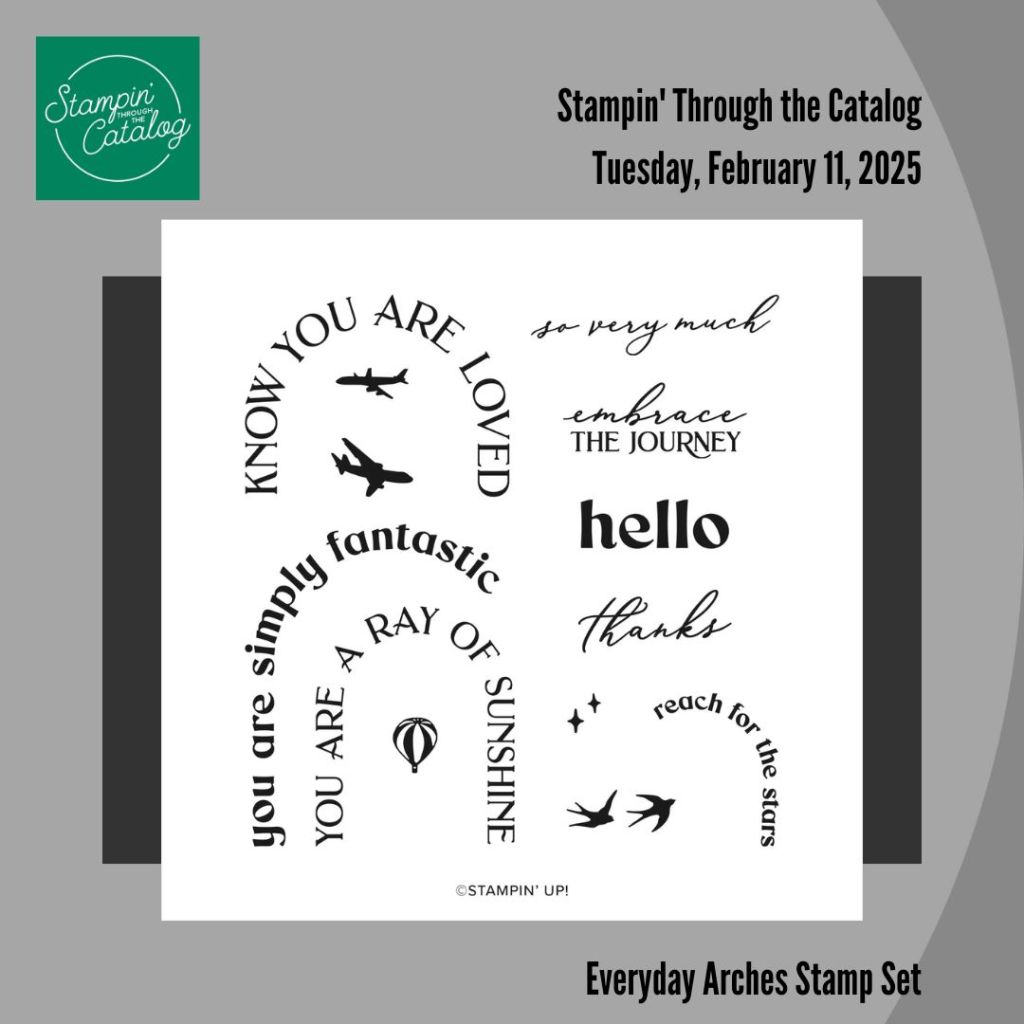 I chose to mirror the sketch and play with today’s Stampin’ Through the Catalog stamp set selection, Everyday Arches, an On-Line Exclusive product.