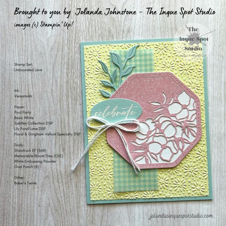 - The Basic White cardstock and Pretty in Pink Designer Series Paper were die-cut with the Octagon die, also from the Memorable Blooms Dies set.