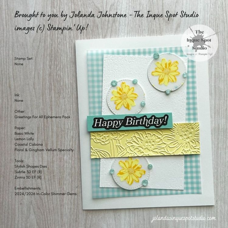 You are so good at combining challenges, Jolanda. Love your color palette and of course the gingham and the yellow flowers too. Thanks for playing along at Seize the Birthday.