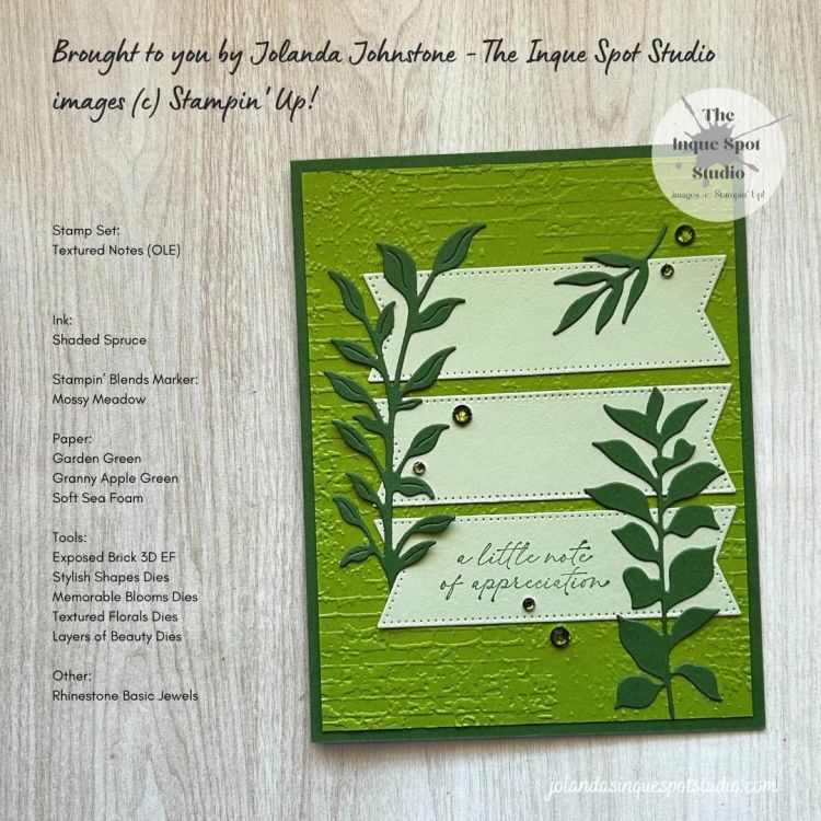 - The sentiment, a little note of appreciation, from the Textured Notes stamp set, an On-Line Exclusive product, was stamped with Shaded Spruce ink.