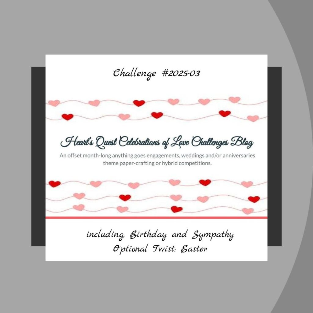 My color choices were influenced by the Park Hopping (March) Inspiration Board and I am sharing this card with Heart’s Quest Celebration of Love (#3) for their Easter option.