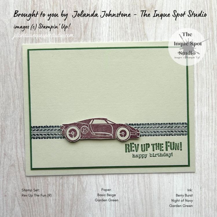 - The sentiment, Rev Up The Fun! happy birthday! was stamped with Garden Green ink.