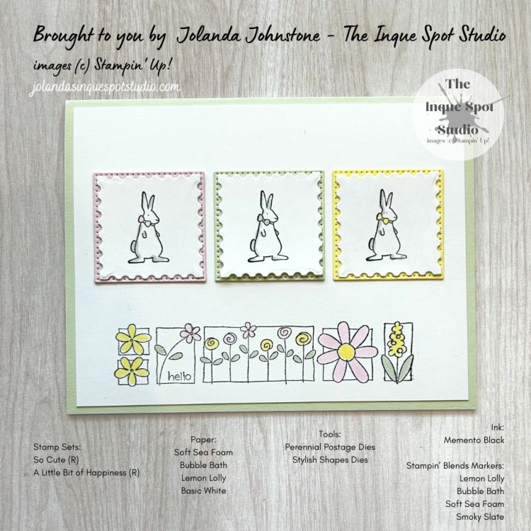 - The Bunnies were then die-cut with the (1⅜” x 1⅜”) Square Postage Stamp die from the Perennial Postage Dies set
