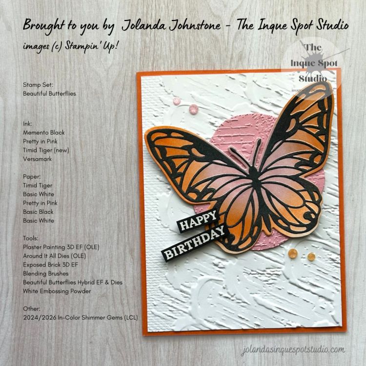 - Using the coordinating Beautiful Butterflies Hybrid Embossing Folder and coordinating Butterfly die, the Butterfly was die-cut and dry-embossed.