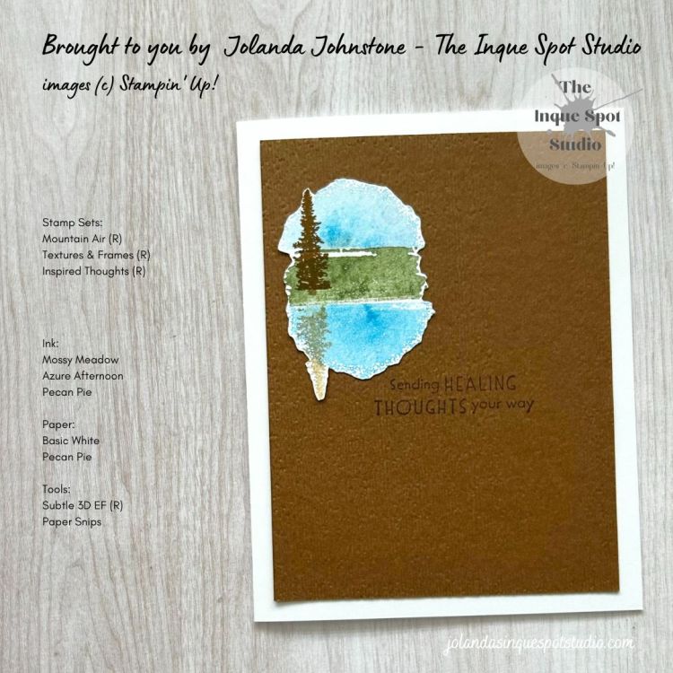 • The sentiment, Sending healing thoughts your way, from the retired Inspired Thoughts stamp set was stamped with Pecan Pie ink and then the panel was dry-embossed with the retired Subtle 3D Embossing Folder.