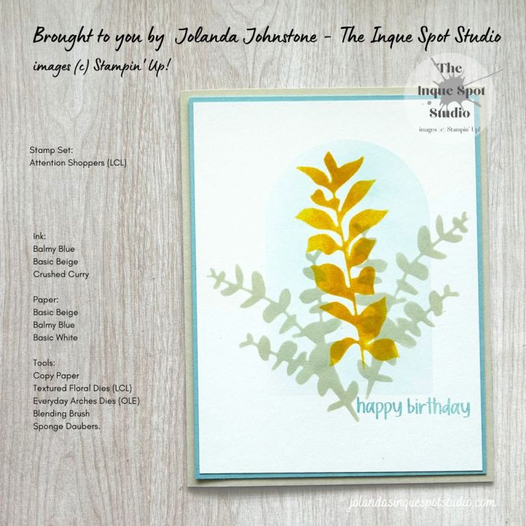• The Arch using the (2¼” x 3½”) Stitched Arch die from the Everyday Arches Dies set, an On-Line Exclusive product, a Blending Brush and Balmy Blue ink.