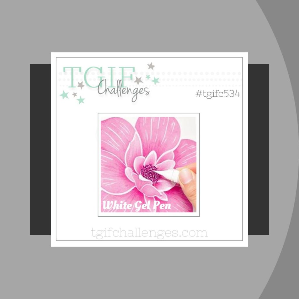 The Flower Challenge (#104) with a pretty colored inspiration photo and TGIF (#534) to use a White Gel Pen.